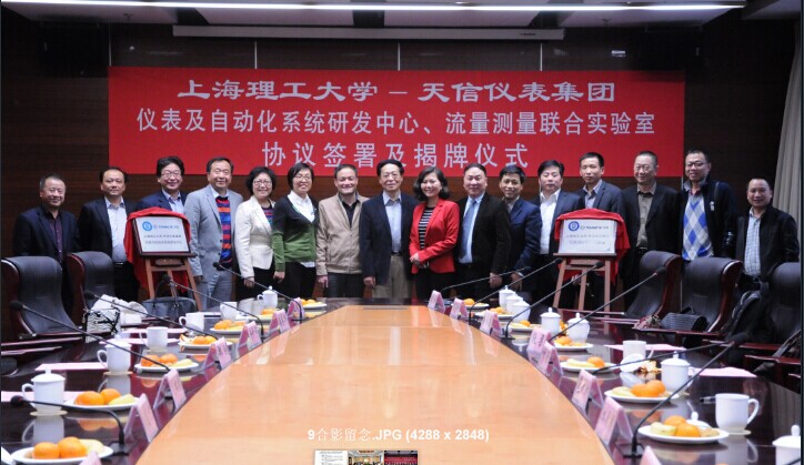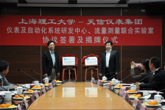 2014年11月25日下午,由上海理工大學(xué)與天信儀表集團(tuán)有限公司合作建立的“上海理工大學(xué)—天信儀表集團(tuán)儀表自動化系統(tǒng)研發(fā)中心、流量測量聯(lián)合實(shí)驗(yàn)室”正式掛牌使用。上海市教委科技發(fā)展中心主任許開宇等教委領(lǐng)導(dǎo)、上海理工大學(xué)副校長鄭剛等校方領(lǐng)導(dǎo)、蒼南縣副縣長林朝朝等政府領(lǐng)導(dǎo)、天信儀表集團(tuán)總裁范叔沙等企業(yè)代表出席揭牌儀式,并由上理工光電學(xué)院院長莊松林院士和天信儀表集團(tuán)常務(wù)副總裁兼總工葉朋揭牌。