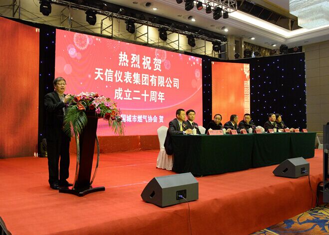 天信儀表集團總裁范叔沙熱情洋溢地致辭,他帶領大家回顧了天信的發展歷程,經過二十年發展,天信從風雨飄搖到枝繁葉茂,從30多名員工到700多名員工,從單一市場到48個公司辦事處,從單一產品到12大系列上千種規格產品,從50萬資本到6.8億的固定資產,從300萬元產值到5億產值,從單一產業到多業聯動,邁入了中國燃氣舞臺的地域方陣,設計和制造了一系列具有自主產權、國家先進的儀器儀表產品,先后獲得了30多項發明專利,參與了8項國家行業和標準的制定,同時還獲得了國家火炬計劃、國家高新技術企業、安全生產標準化二級企業全國五一勞動獎狀,浙江省重合同守信用、浙江省綠色企業、溫州市百強企業、溫州市活力和諧企業、蒼南縣模范工業企業等榮譽稱號。這一矯人的業績也向世人見證了天信的發展源于夢想、基于奮斗、重于堅持,面對新環境,范總表示,天信將時刻保持謙虛務實的心態,常懷感恩忠誠之情,更加團結拼搏,共同推進行業進步。中國城市燃氣協會遲國敬秘書長對天信儀表集團的發展給予高度評價,并對天信儀表集團的發展寄予了殷切希望。他說,未來的發展,將為儀表計量行業提供一個契機,希望天信快速地適應市場變化,繼續穩居行業龍頭,最后他預祝天信在未來發展過程中事業繁榮昌盛,合作伙伴取得重大成功,員工們身體健康、事業興旺、工作愉快!