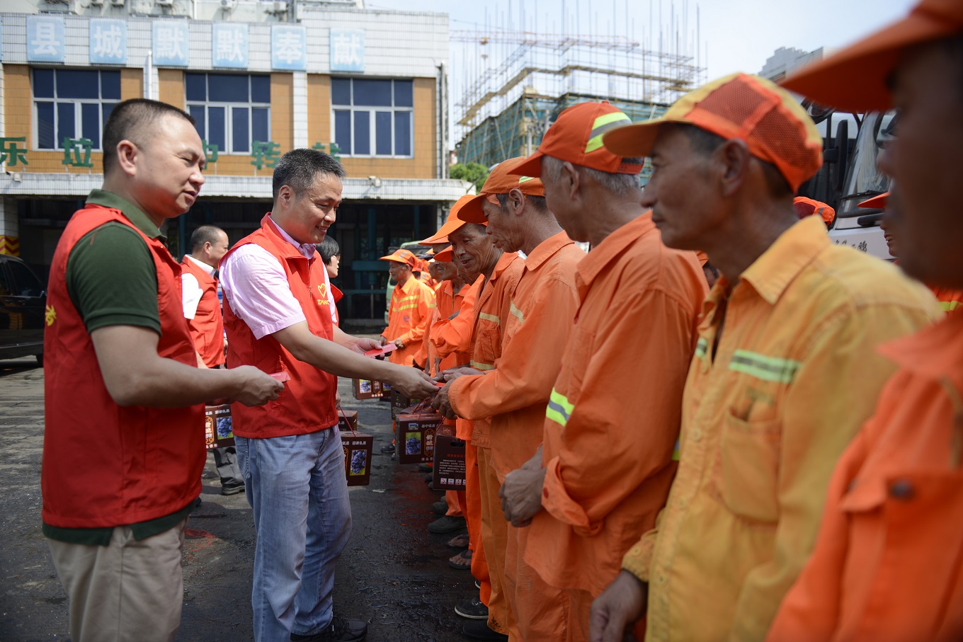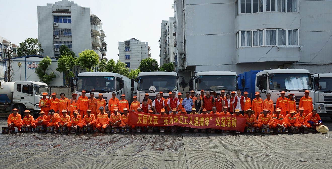 對(duì)環(huán)衛(wèi)工人的關(guān)愛(ài),體現(xiàn)了一個(gè)城市的文明程度,這不是表現(xiàn)在口頭上,而是體現(xiàn)在具體的行動(dòng)中。為了號(hào)召?gòu)V大市民講文明、樹(shù)新風(fēng),共同參與城市環(huán)境衛(wèi)生建設(shè),同時(shí)緩解、分擔(dān)環(huán)衛(wèi)工人的工作壓力,天信儀表集團(tuán)有限公司黨工團(tuán)婦于今年夏季再一次發(fā)起;我為環(huán)衛(wèi)工人送清涼;的微公益活動(dòng)。