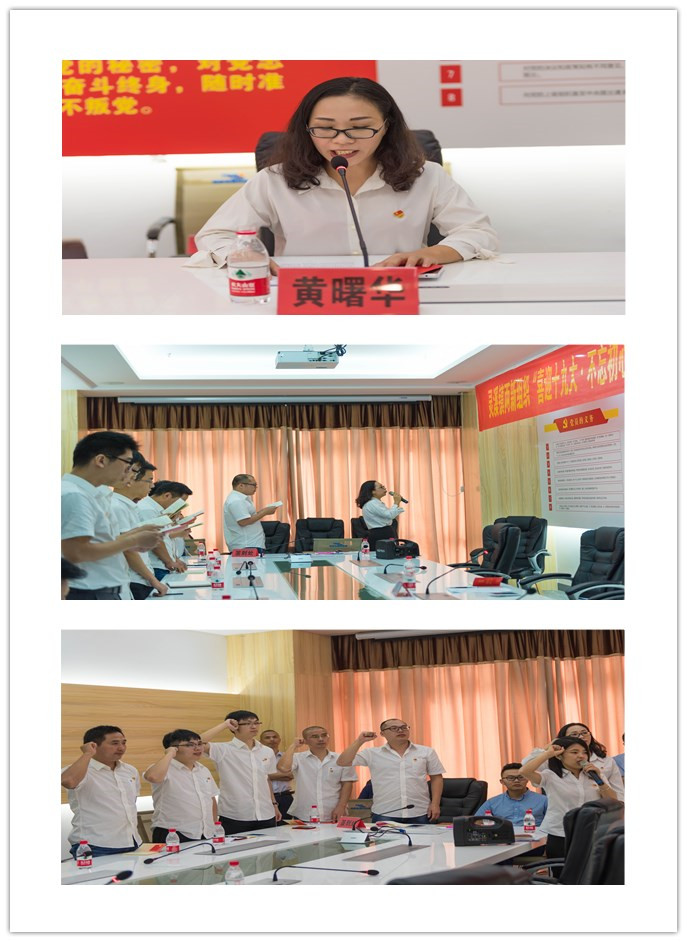 在集體觀看警示教育片、學習有關文件精神后,天信的8位黨員、入黨積極分子在黨委書記黃曙華的帶領下,有序按照蒼南縣主題黨日+N模式作示范教學。佩戴黨徽持黨員一本通簽到,通過支付寶或微信紅包現場繳納10月份黨費、重溫入黨誓詞、集體誦讀黨員的義務,在喜迎十九大、說說心里話主題討論交流環節中,大家袒露心聲,發言踴躍,有表達對國家、對黨、對企業熱愛的,有回顧總結反思自己學習工作的,有對上級和公司黨組織提出希望和要求的,預備黨員鄒邦福說,能在十九大召開之前,光榮加入中國共產黨,他感到無比驕傲和自豪!隨后,黨委書記黃曙華對大家的發言給予了點評,她充分地肯定了天信黨員在日常工作中的付出和努力,同時希望大家繼續立足崗位、發揮先鋒模范作用,以優異的成績向黨的十九大獻禮!