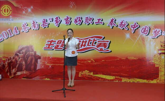 2014年7月22日下午,在蒼南縣“爭當好職工,奉獻中國夢”主題演講比賽中,我公司選送的黃君用樸實的語言,真情的故事,鮮活的事跡,講述了她的追夢故事,榮獲了第二名的好成績。